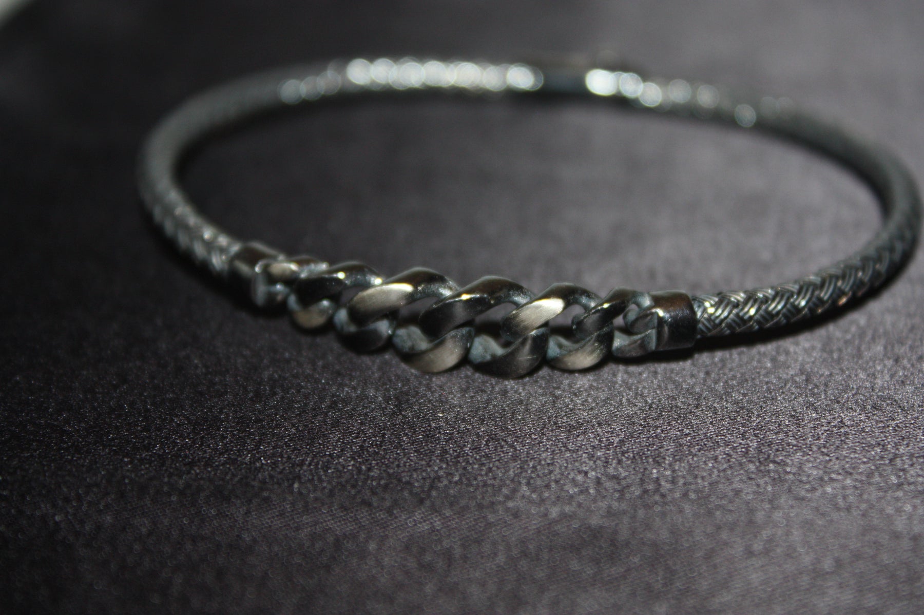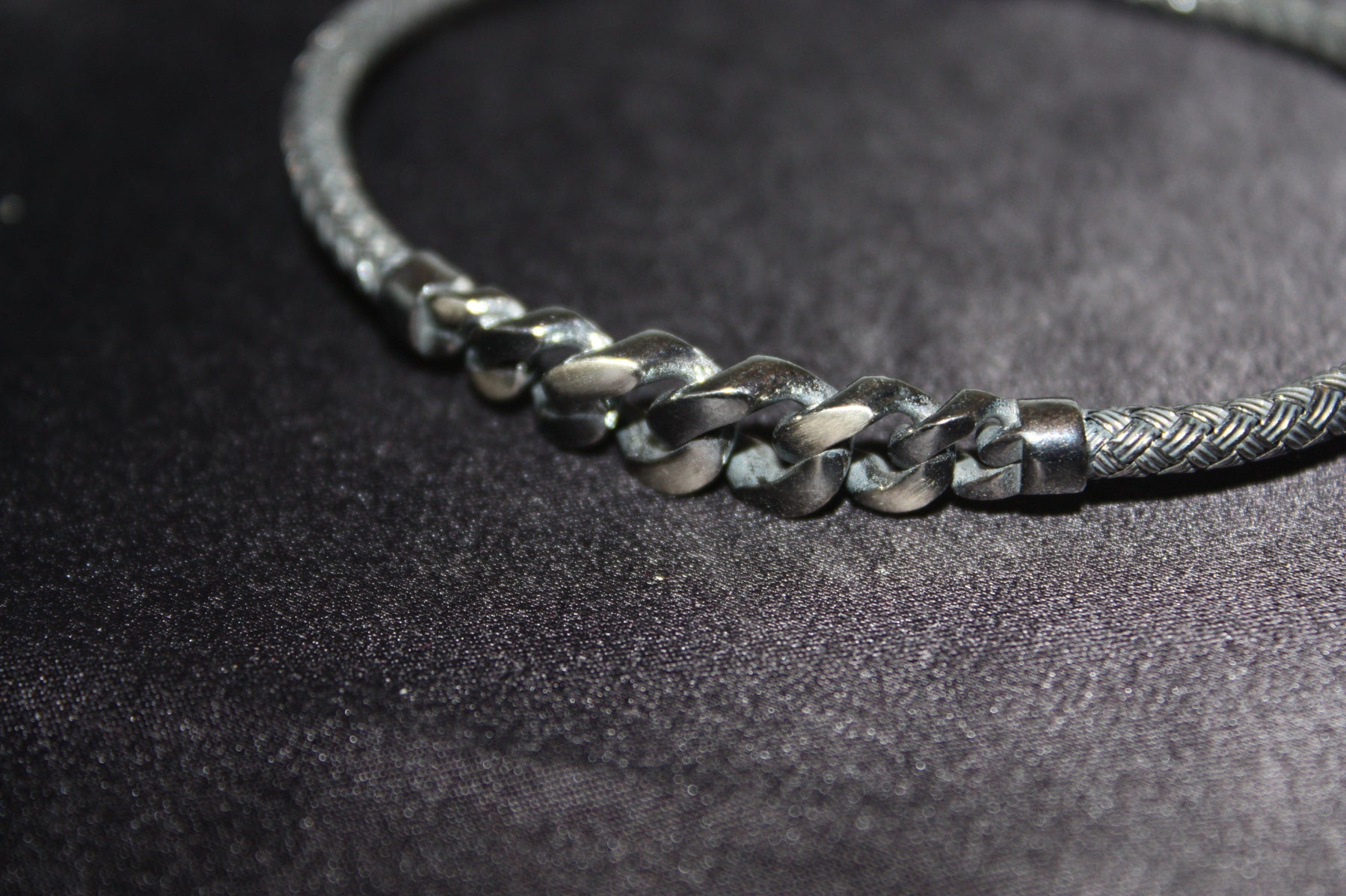 Tidlös styrka möter modern design i Silver Edge – ett exklusivt armband tillverkat i äkta 925 sterlingsilver med en mörkt oxiderad finish. Den flätade strukturen och de kraftfulla kedjelänkarna skapar en perfekt balans mellan råhet och raffinerad elegans.