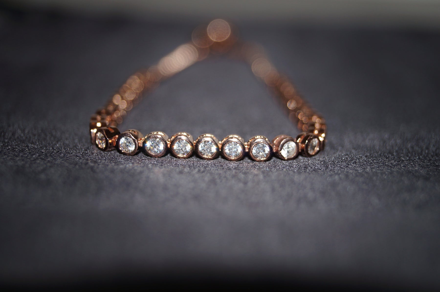 Aurora Rosé – Justerbart Armband i 925 Silver med Roséguldplätering och Klara Stenar – 10g