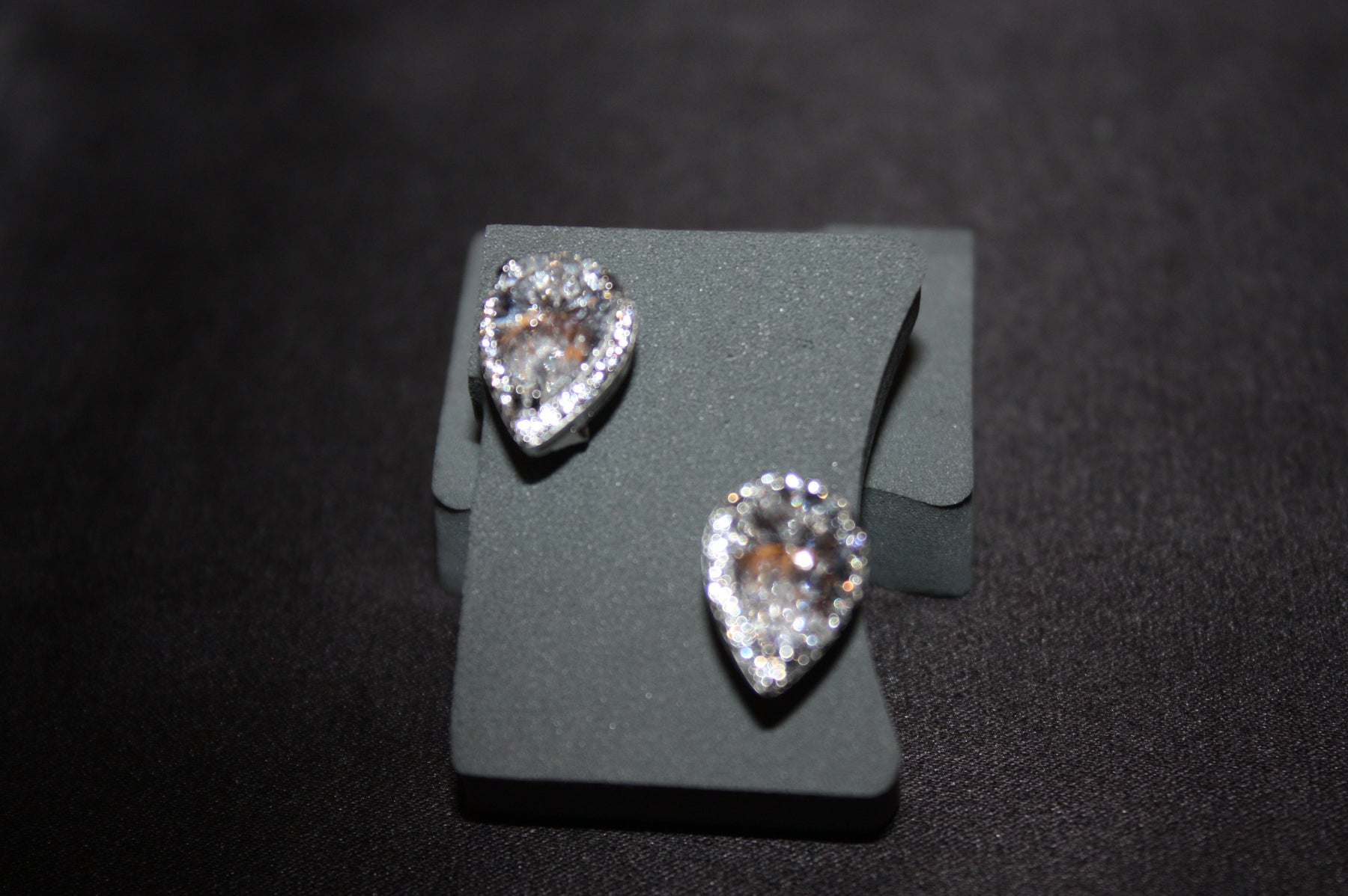Stenar: Swarovski Zirconia (droppformad mittsten + pavé-halo)