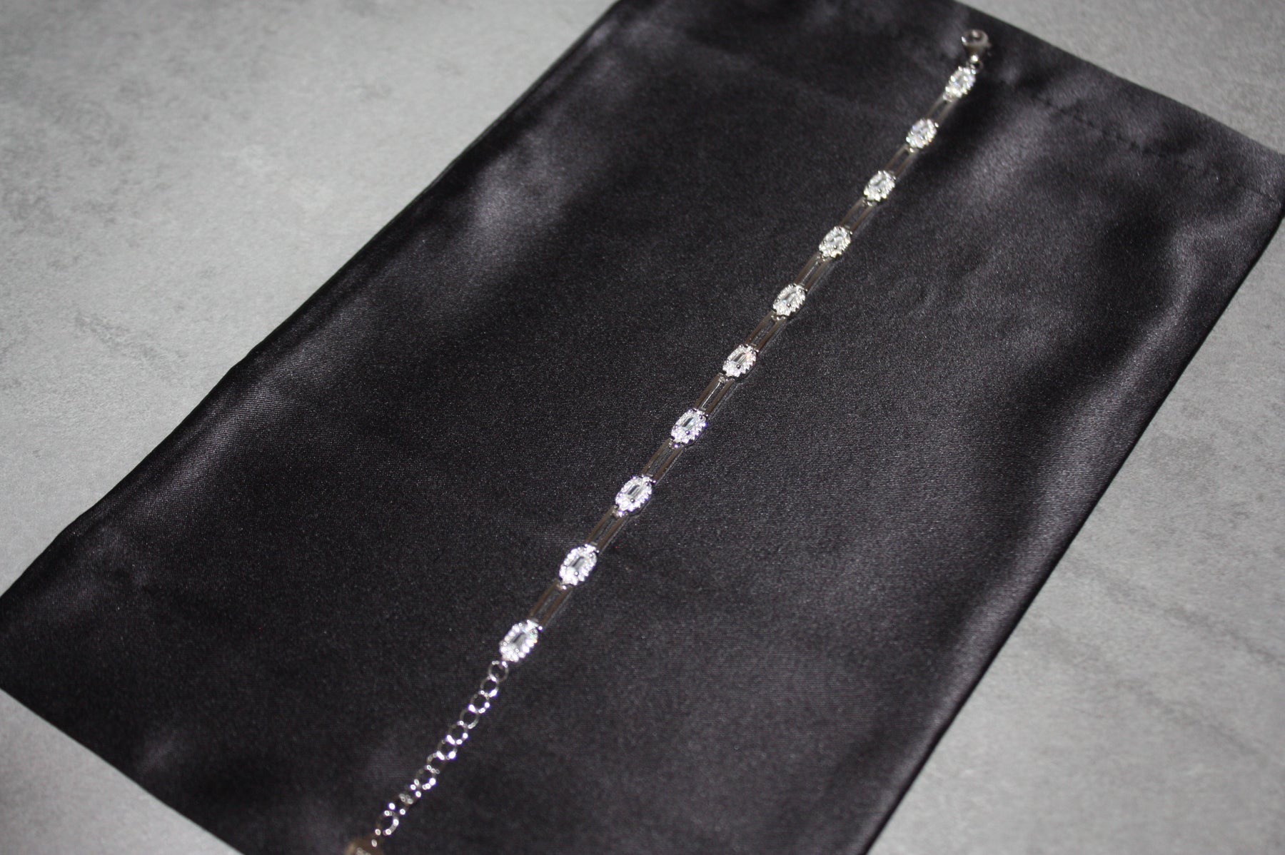 Låt Aurora förföra dig med sin tidlösa elegans och subtila lyx. Det här armbandet är tillverkat i äkta silver och prytt med ovala, gnistrande stenar som reflekterar ljuset på ett magiskt sätt – precis som norrskenet det är döpt efter. Med en vikt på 8,18 gram känns det både exklusivt och behagligt runt handleden.
